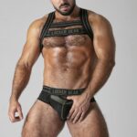 Arnês elástico de tira dupla.