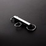 Feita de aço inoxidável de alta qualidade com anéis em ambos os lados e um anel no centro da barra.