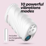 Nautilus tem duas câmaras, uma normal que agarra bem o seu pénis, e uma câmara mais estreita para uma sensação de maior aperto. Pode escolher uma delas para penetrar, usando a outra para colocar a bala vibratória incluída.